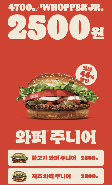 - 와퍼주니어 2500원