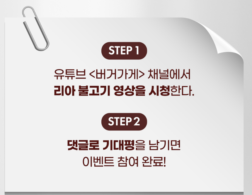 - 리아 불고기 유튜브 댓글 이벤트 참여 방법