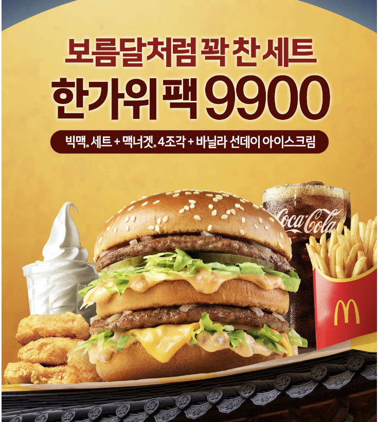 - 빅맥 세트부터 디저트까지 한번에 9900 한가위 팩